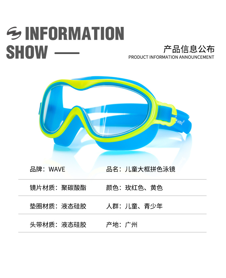 新款跨境男女童游泳眼镜男童硅胶防水防雾高清大框潜水镜儿童泳镜