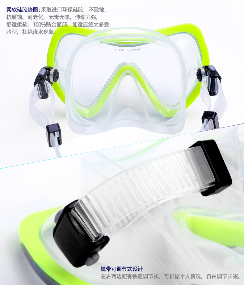 wave跨境爆款专业潜水面镜全干式呼吸管男女大框防雾套装潜水镜