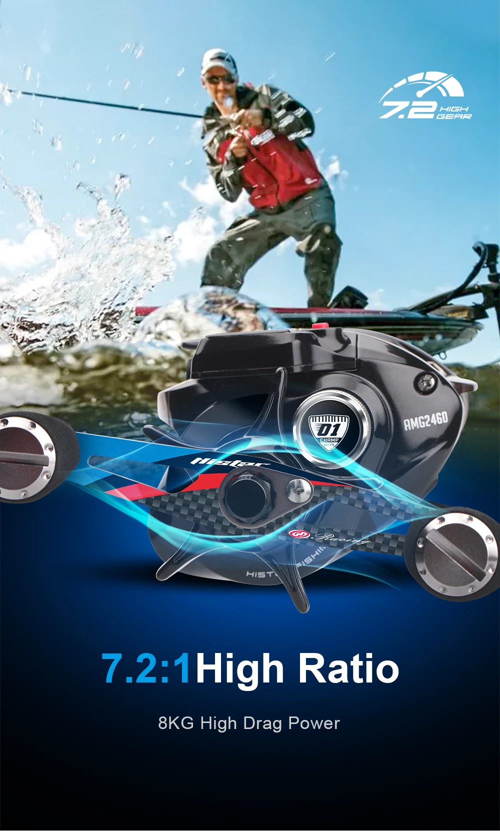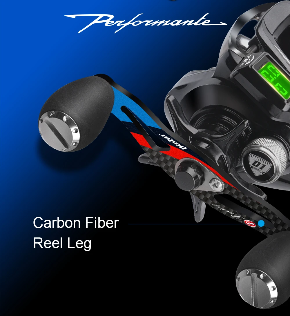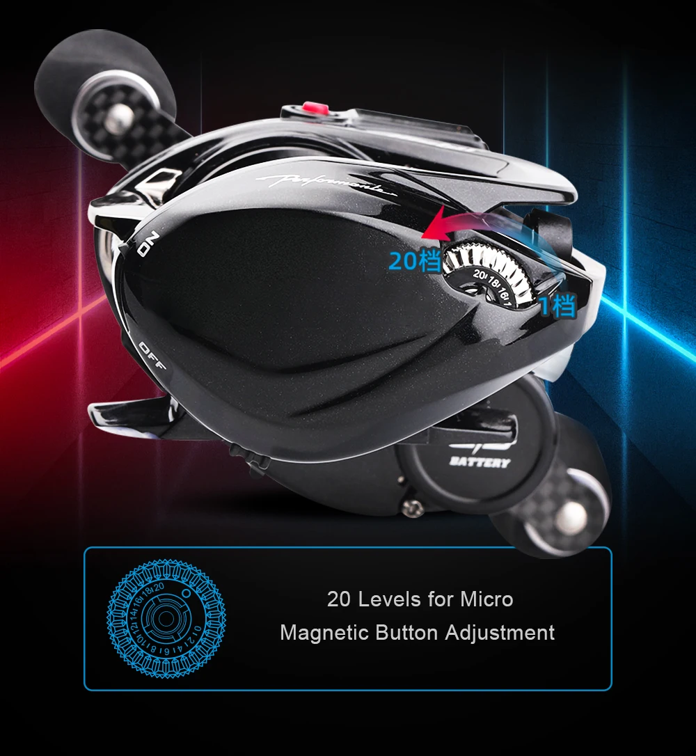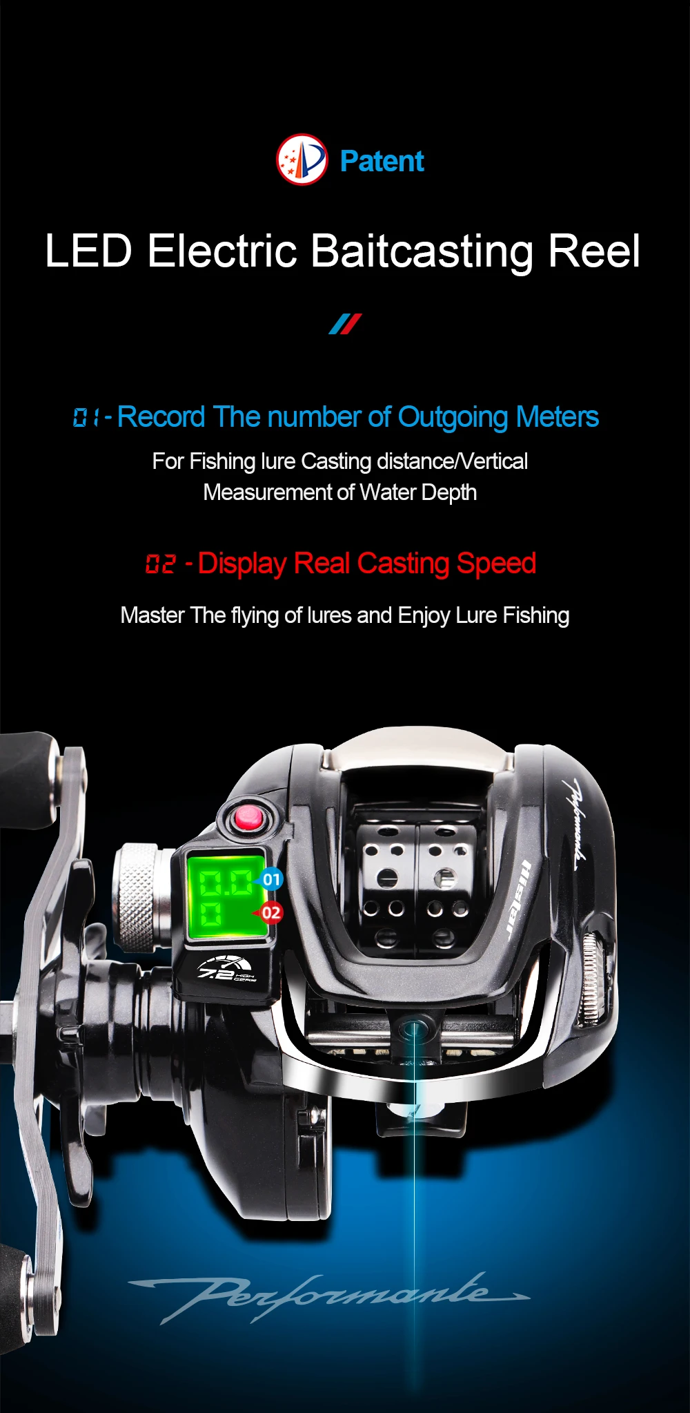 Features:1.Funnel Big Line Guide For Long And Fast Casting And Less Line Friction 2.Carbon Fiber Reel Leg: Light Weight & Sturdy For Big Fishes 3.Ultra Light Carbon Fiber Material Body For More Durable 4.3D Fashion LED Backlight Digital Display Screen For Fishing At Night 5.Digital Screen’s Function: Record The Number of Outgoing Meters For Fishing Lure Casting Distance/Vertical Measurement Of Water Depth Display Real Casting Speed Master The Flying Of Lures And Enjoy Lure Fishing Spool Matching With Centrifuge Device For Braking 6.Circle Magnetic Braking System For Stable Casting 7.20 Levels for Micro Magnetic Button Adjustment 8.Beginner Mode/Normal Mode/Advanced Mode Three Working Model Meet Your Demands 9.7.2:1 High Ratio For More Catching 10.8G Super Drag Power11.Detachable Battery