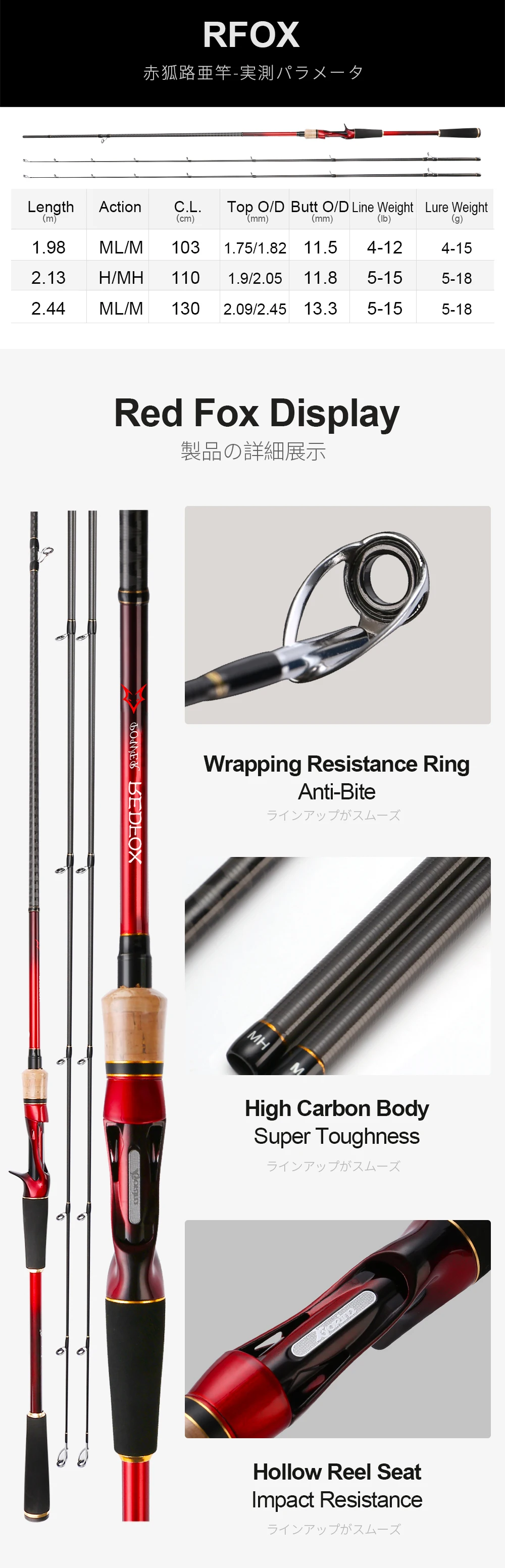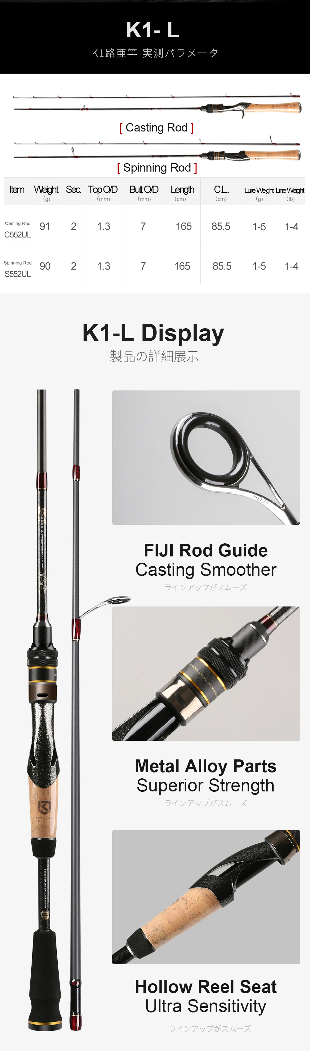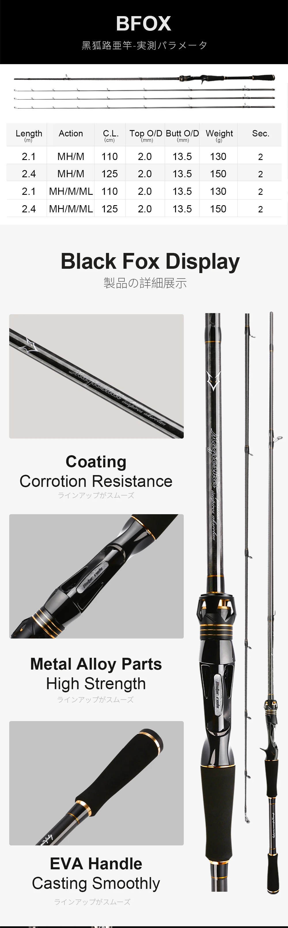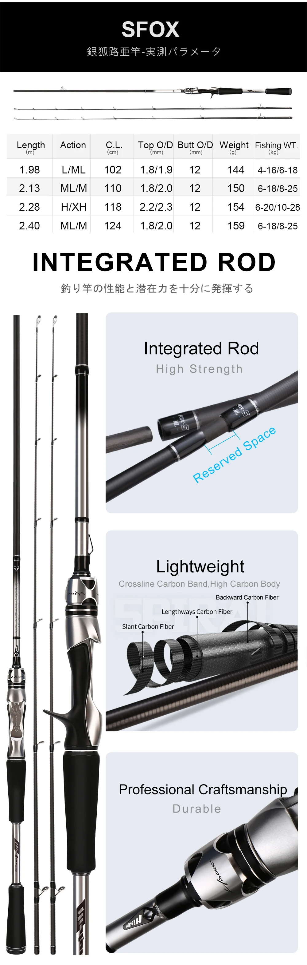 Model | Weight(g) | Sec. | Top O/D(mm) | Butt O/D(mm) | Length(cm) | C.L.(cm) | Lure Weight(g) | Line Weight(lb) |